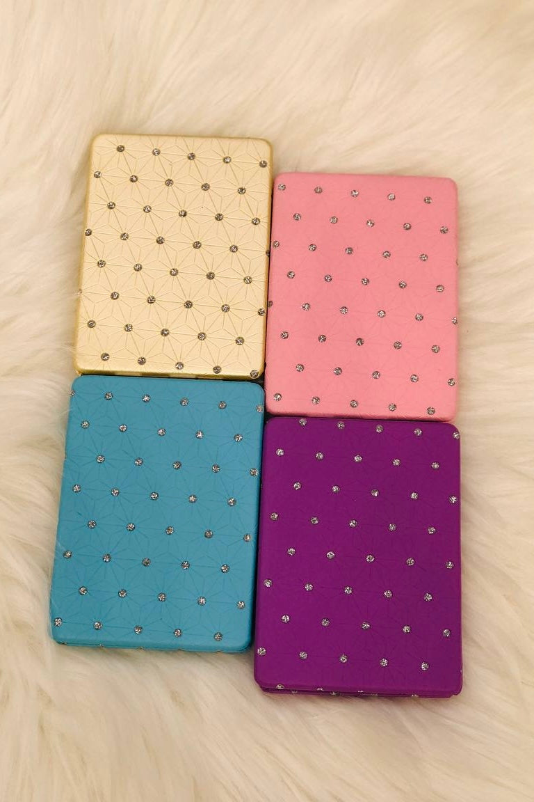 This mirror features a magnetic closure for easy, secure opening and closing. Inside, one side offers a standard true-view mirror, while the other provides magnified viewing for detailed touch-ups
